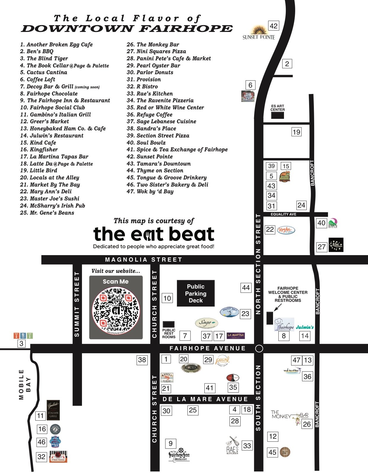 Downtown Fairhope restaurant map courtesy of The Eat Beat